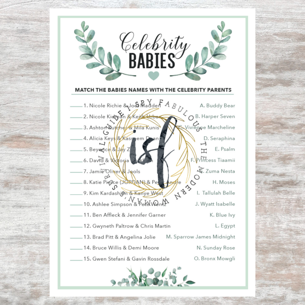 Plan the perfect baby shower with these greenery themed, gender neutral, baby shower games! With 7 games and answer keys included, all you'll have to do is print and go!