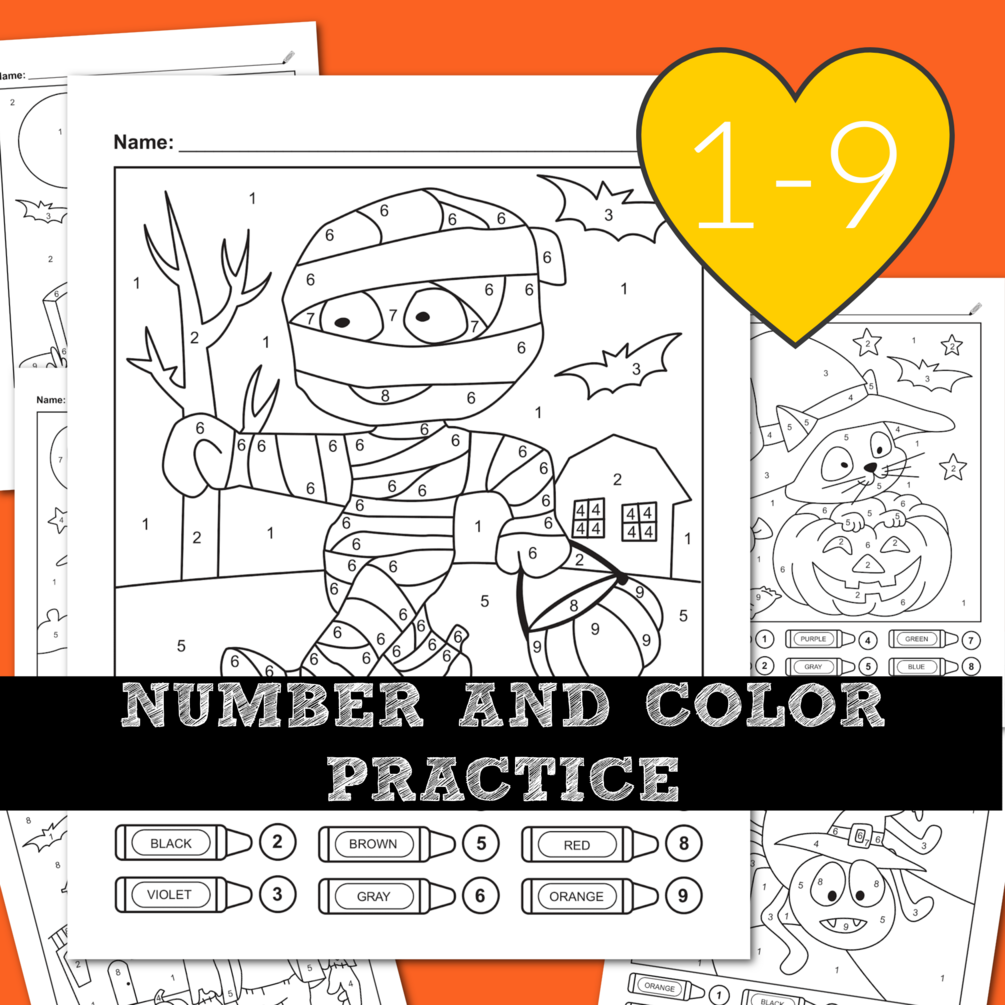 These 10 color by number worksheets are Halloween and October-themed and so much fun! Kids won't even know they are learning while they are coloring! Plus, with limited lines in the backgrounds, they are much less overwhelming for young artists.