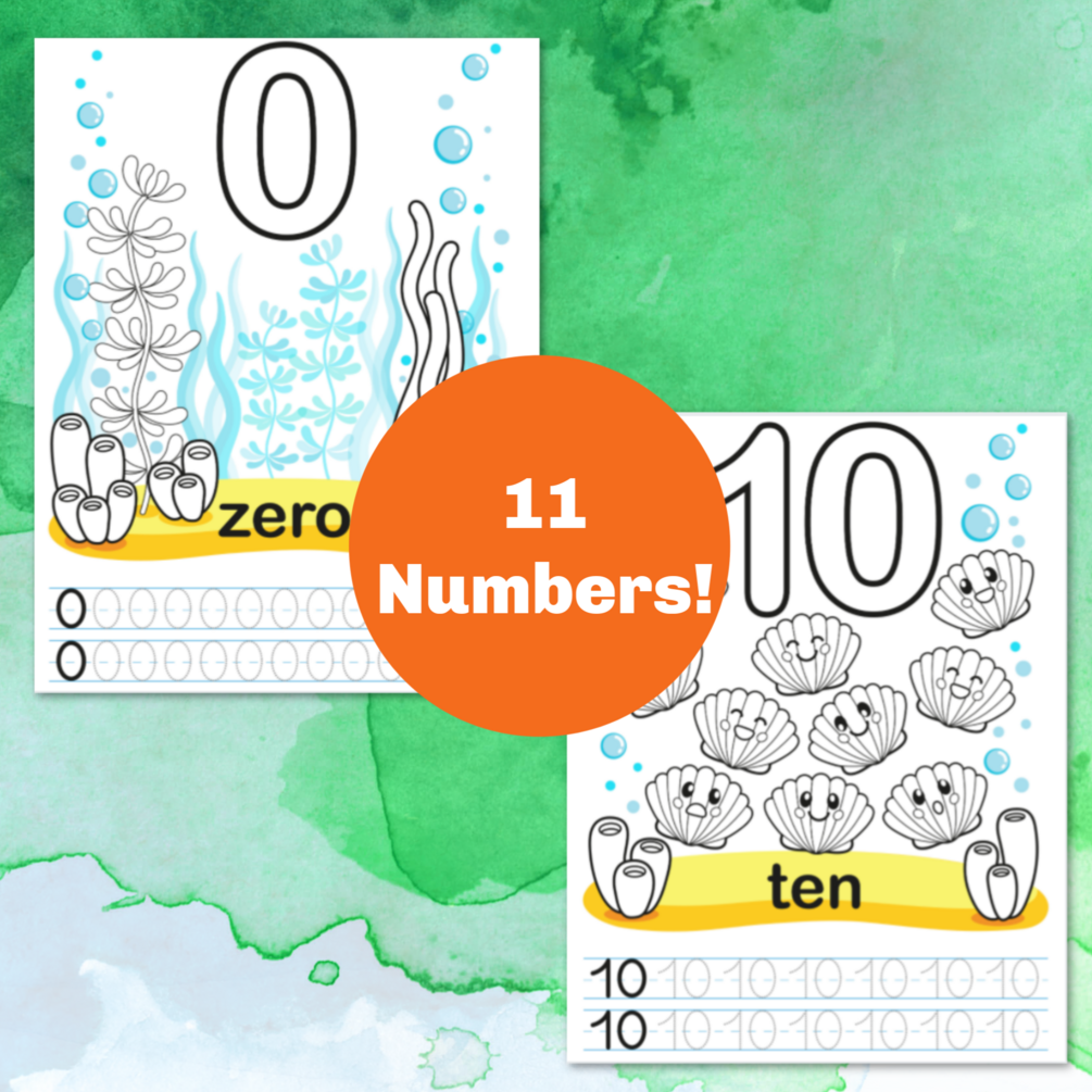 Toddlers will learn all about numbers, counting, ocean creatures, and writing with these whimsical ocean-themed number worksheets.